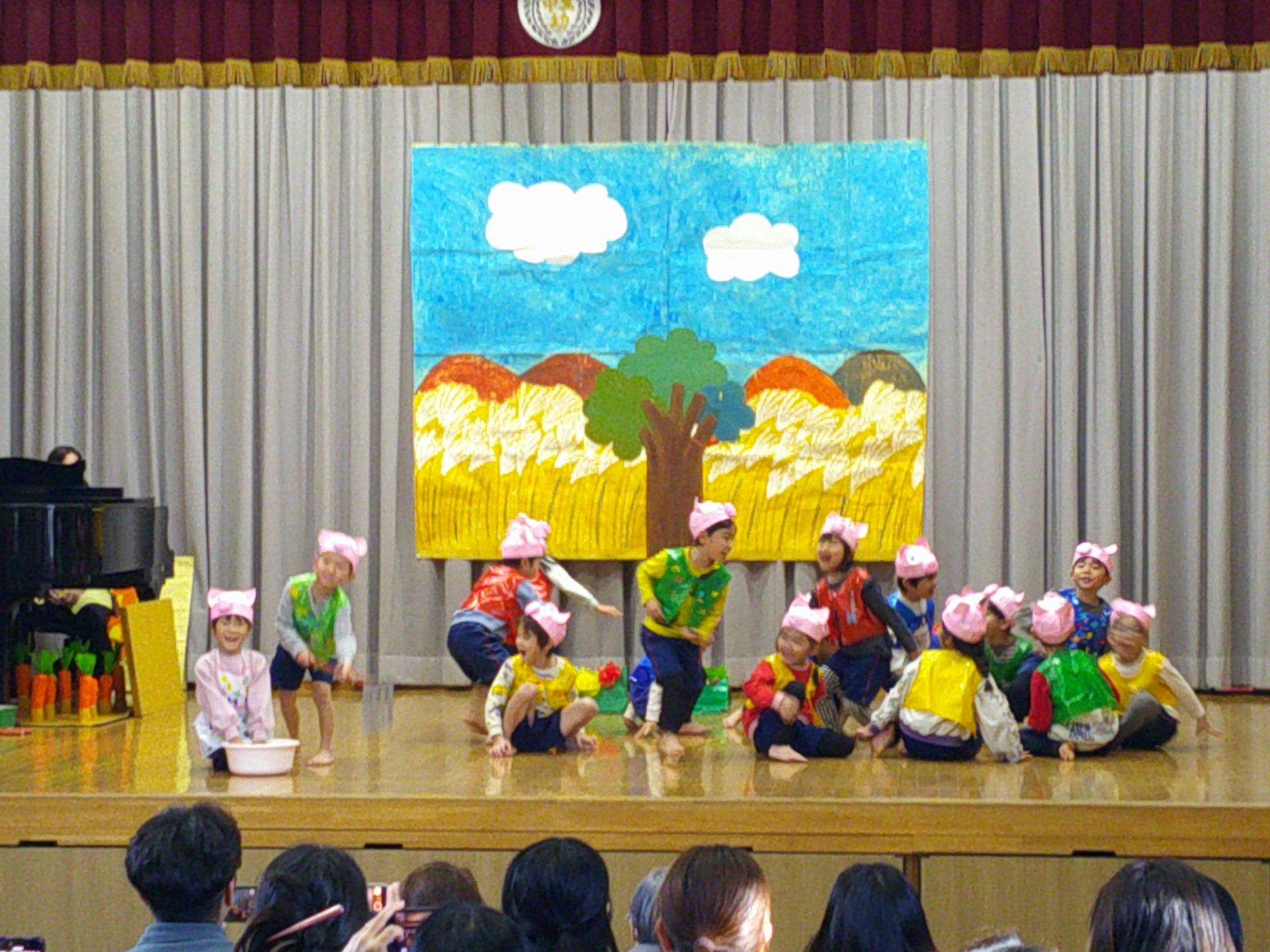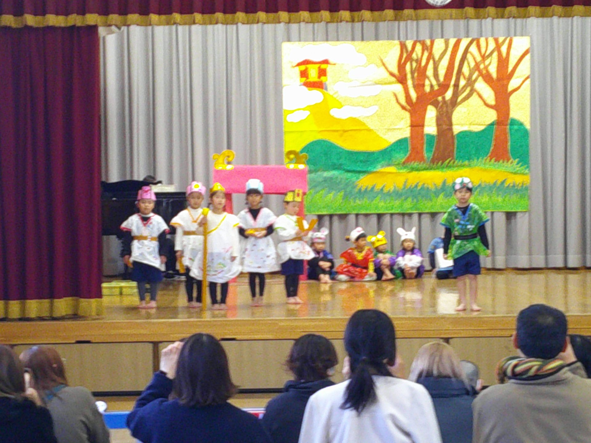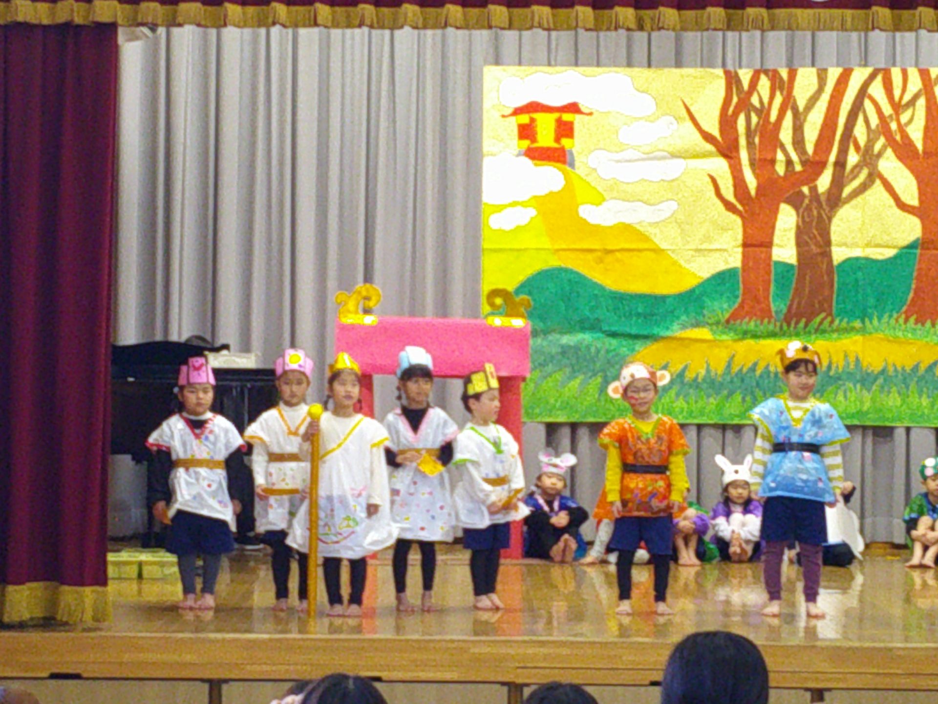 12月5日(金)、年長の劇の会(1組「にんじんばたけのパピプペポ」、2組「十二支のおはなし」、3組「そんごくう」)を行いました。子どもたちは役になりきって、みんなで協力しながら劇を楽しく演じていました。