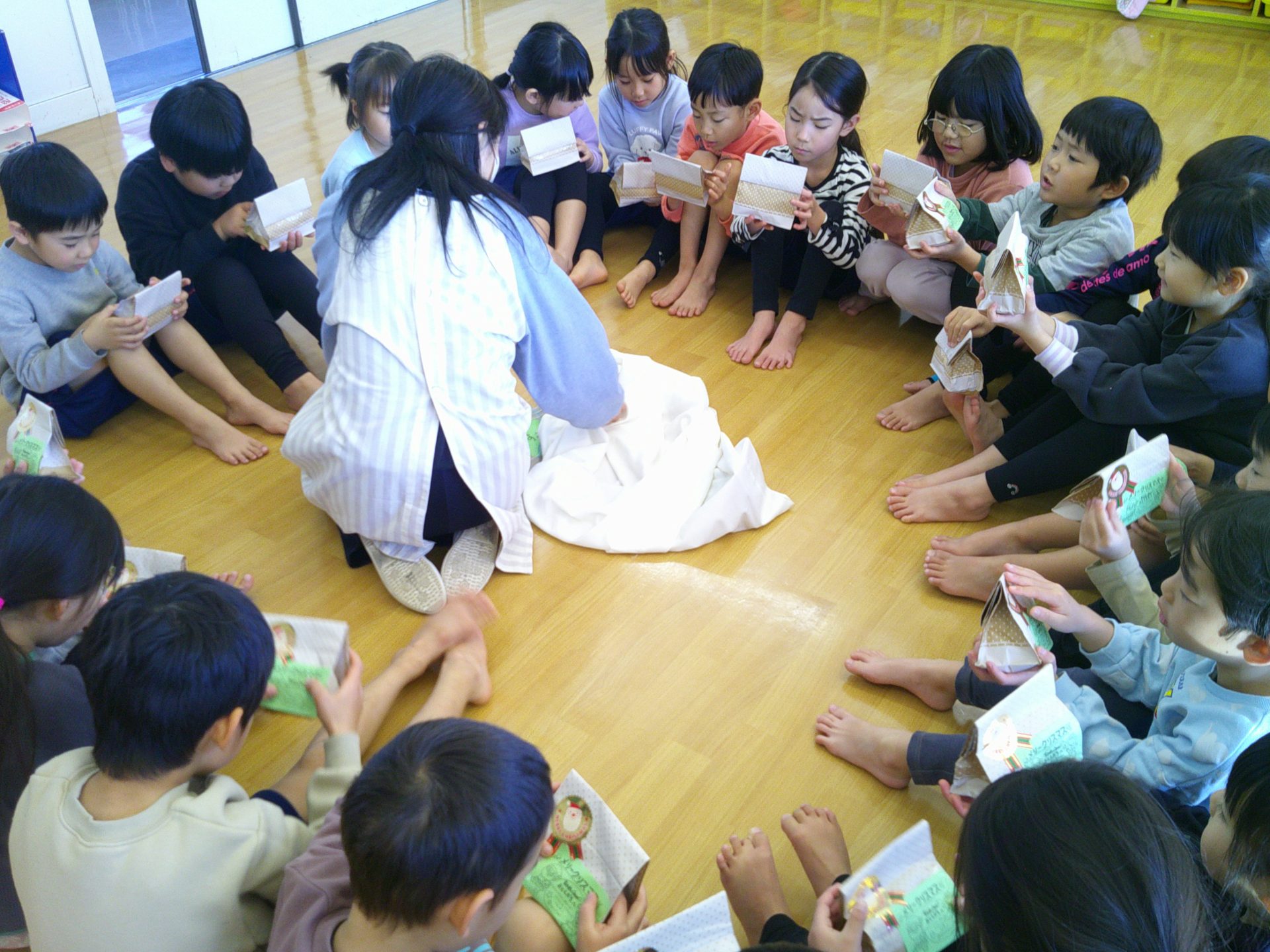 12月18日(木)、クリスマス会を行いました。子どもたちは、サンタクロースからメッセージとプレゼントをもらいとても喜んでいました。