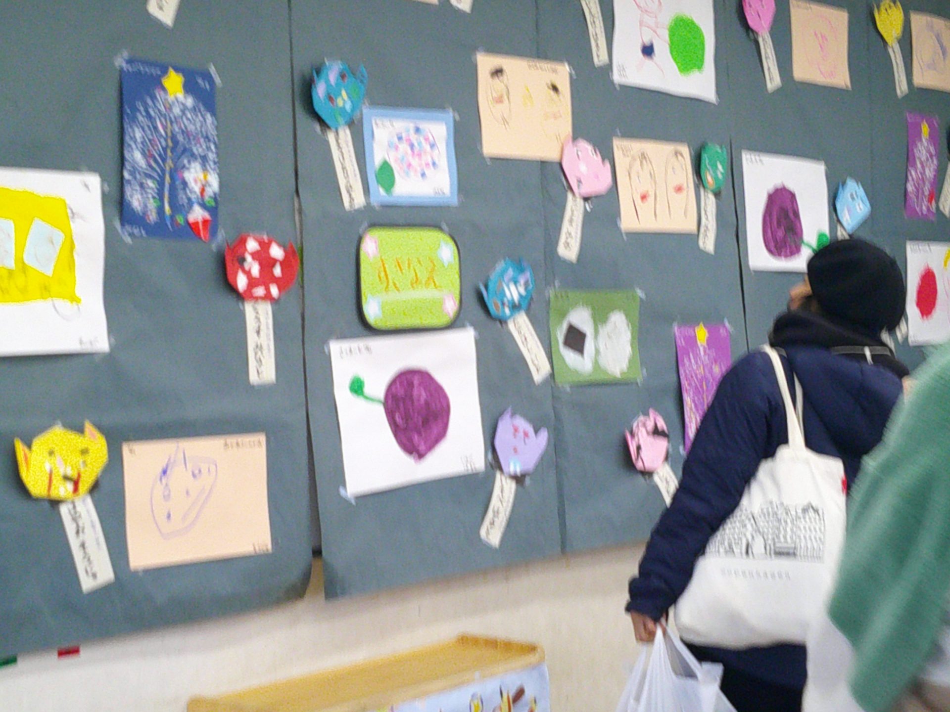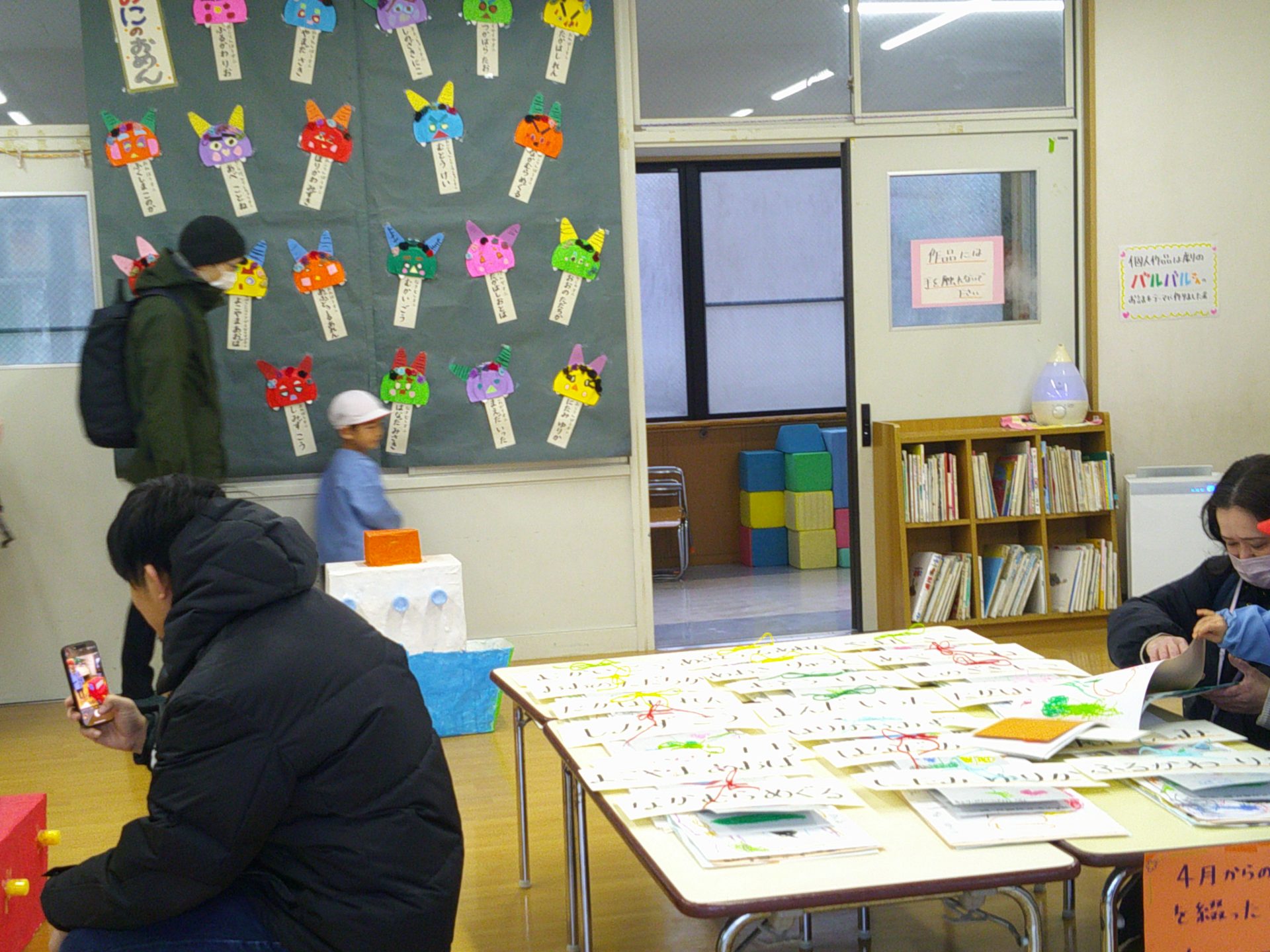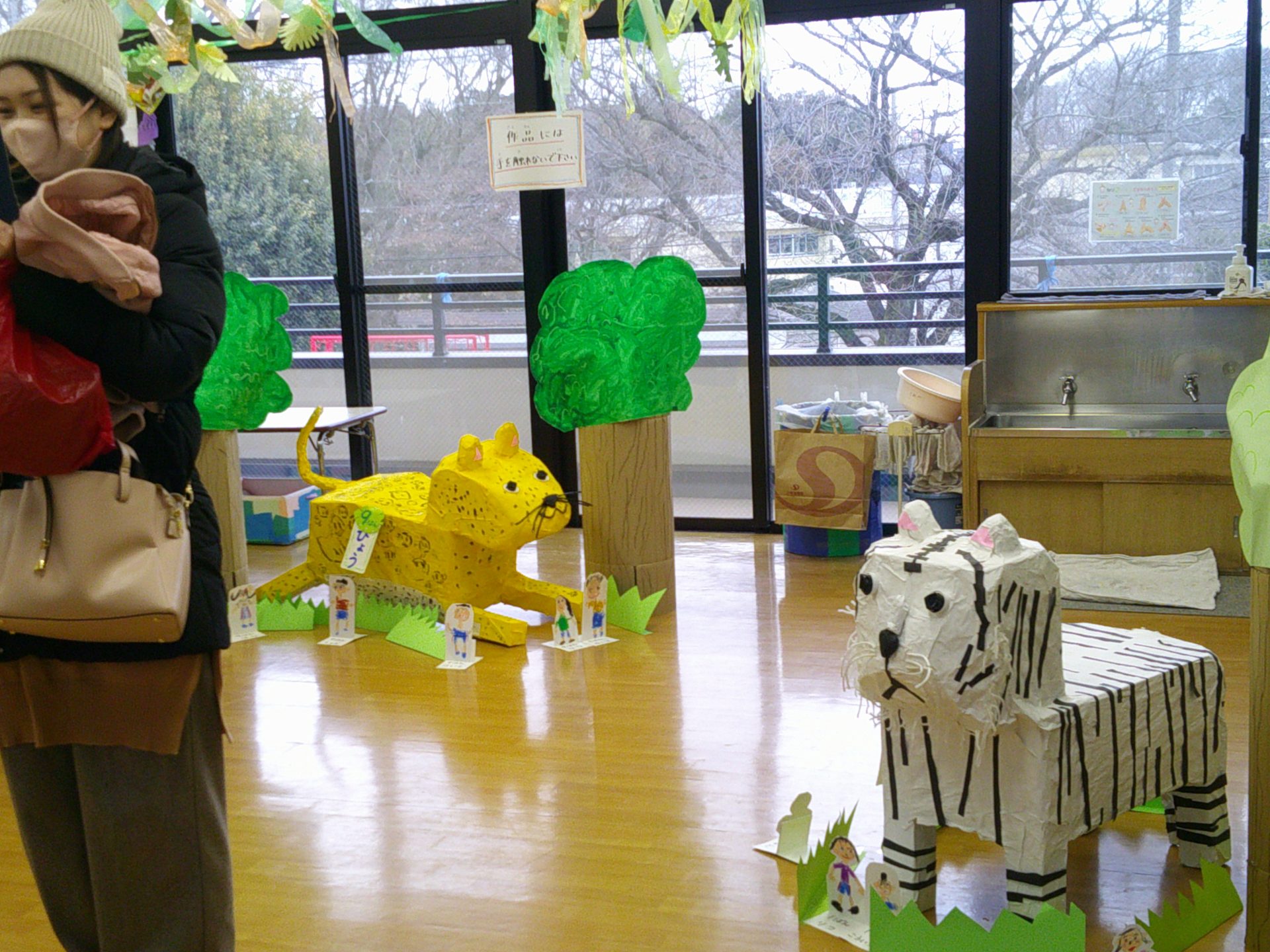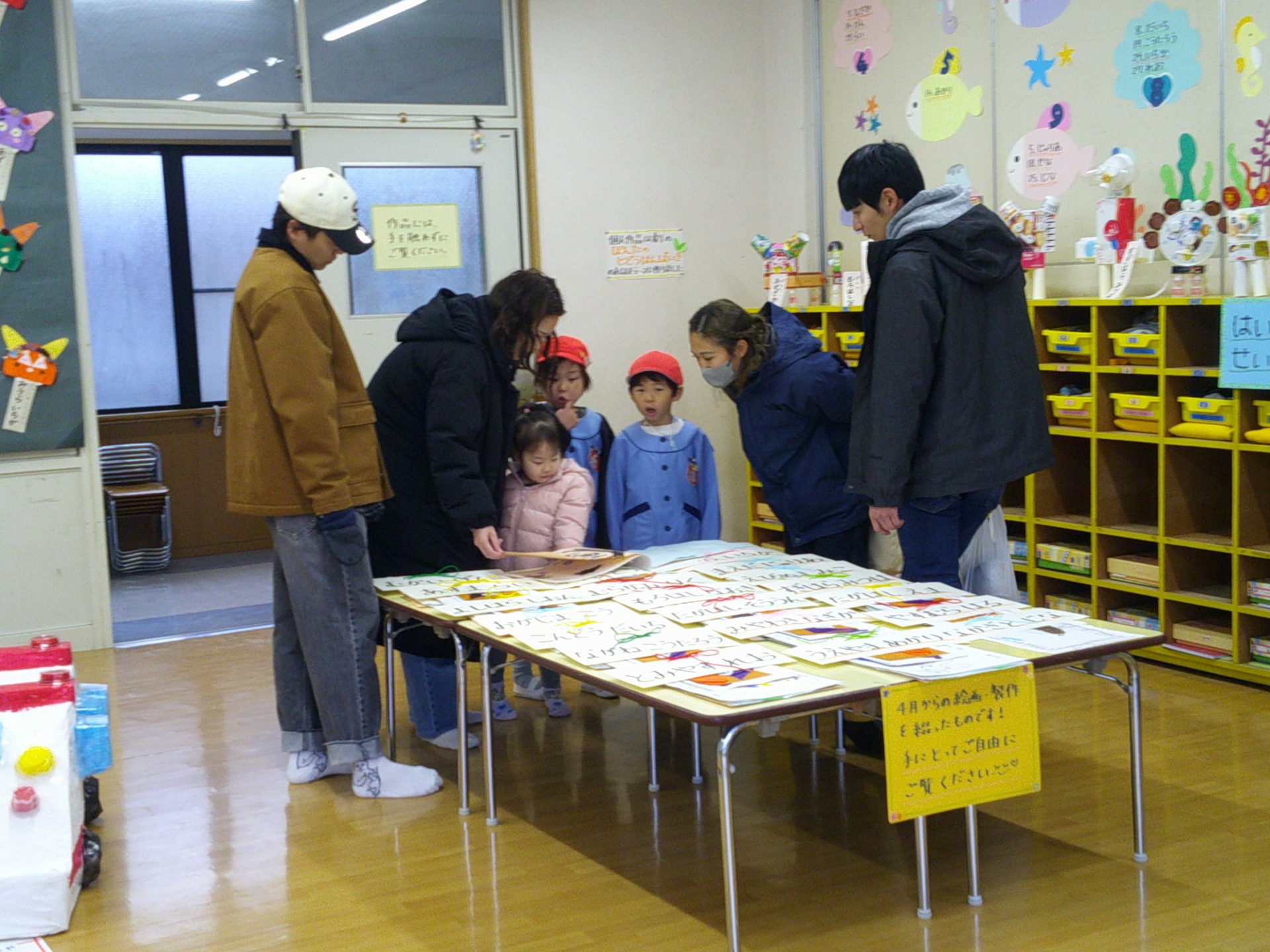 2月7日(土)、作品展を行いました。子どもたちの1年間の個人制作作品や共同制作作品など展示作品を家族で熱心に鑑賞していました。