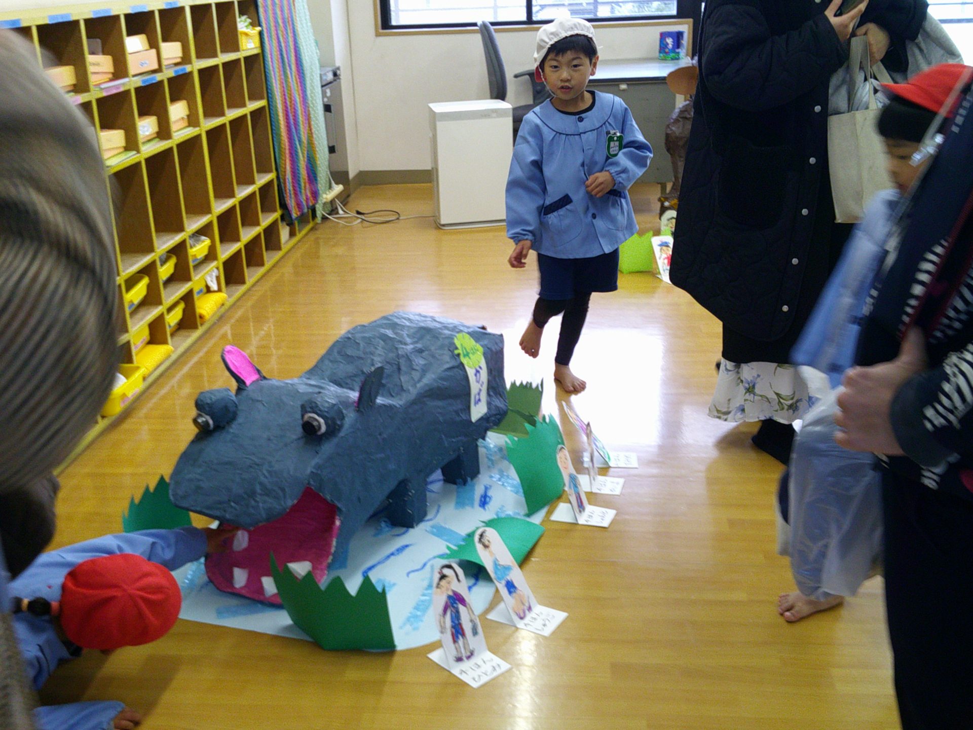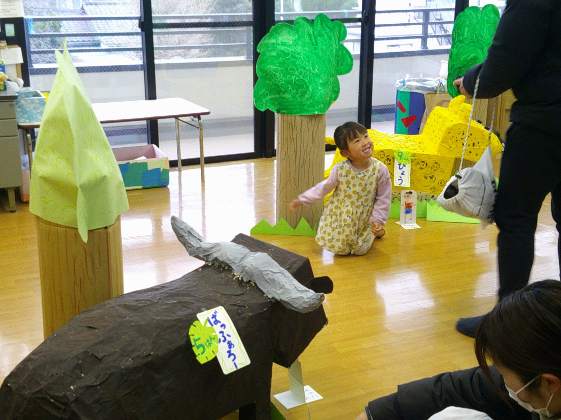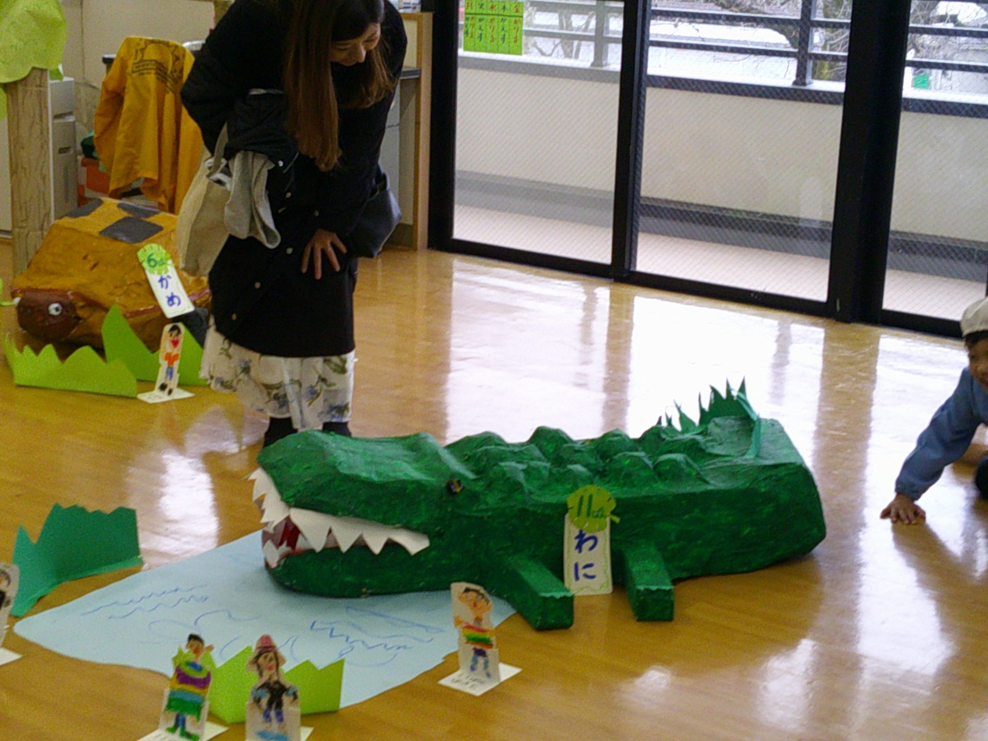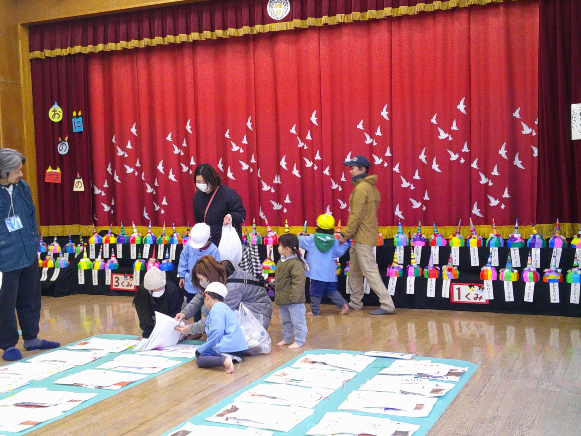 2月7日(土)、作品展を行いました。子どもたちの1年間の個人制作作品や共同制作作品など展示作品を家族で熱心に鑑賞していました。